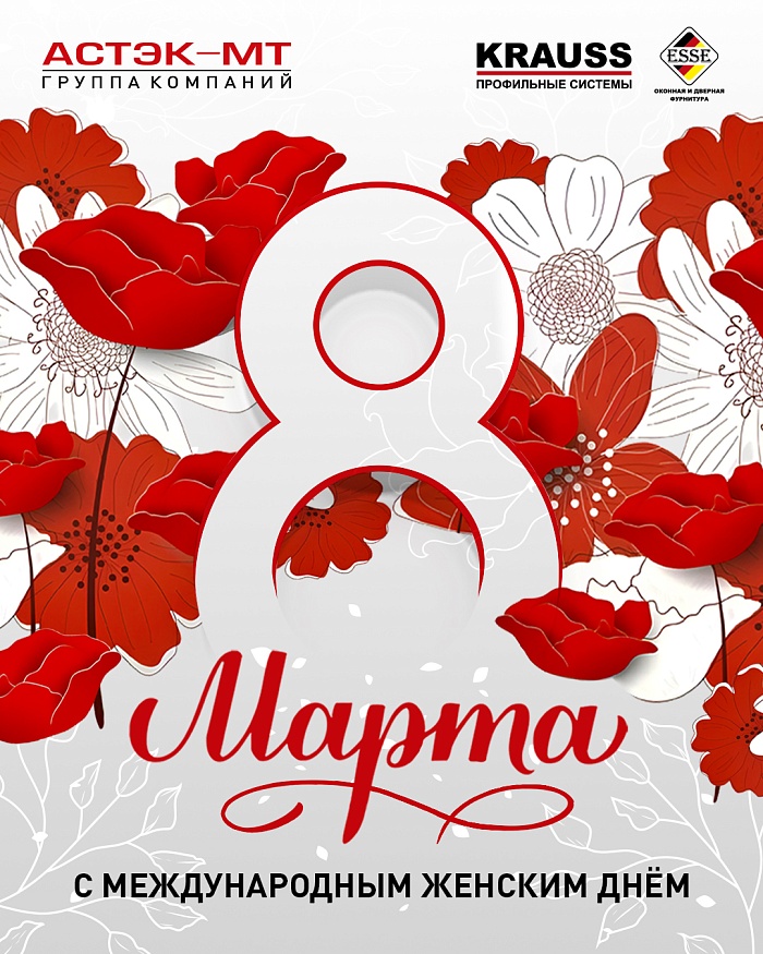 ГК «Астэк-МТ» поздравляем вас с Международным женским днем 8 марта! Пусть этот день наполнит ваши сердца радостью, теплом и любовью. Желаем вам красоты, гармонии, успехов и исполнения всех желаний. Пусть каждый день будет наполнен яркими событиями, улыбками и приятными сюрпризами. Будьте счастливы и любимы!
